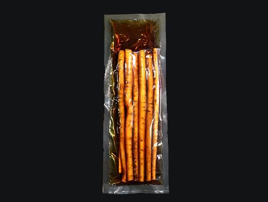 ごぼう、漬け原材料[しょうゆ、砂糖、ぶどう糖果糖液糖、醸造酢、発酵調味料、とうがらし]、調味料(アミノ酸等)、カラメル色素、酸化防止剤(ビタミンC)
