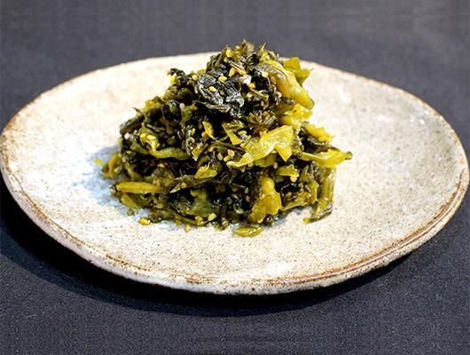 高菜を細かく刻み、胡瓜・生姜・ゴマを入れて仕上げました。