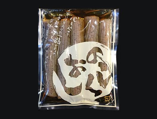 こんにゃくの中にごぼうがかくれんぼしています。こんにゃくの柔らかさとごぼうのしっかりとした異なる食感がおもしろい一品です。